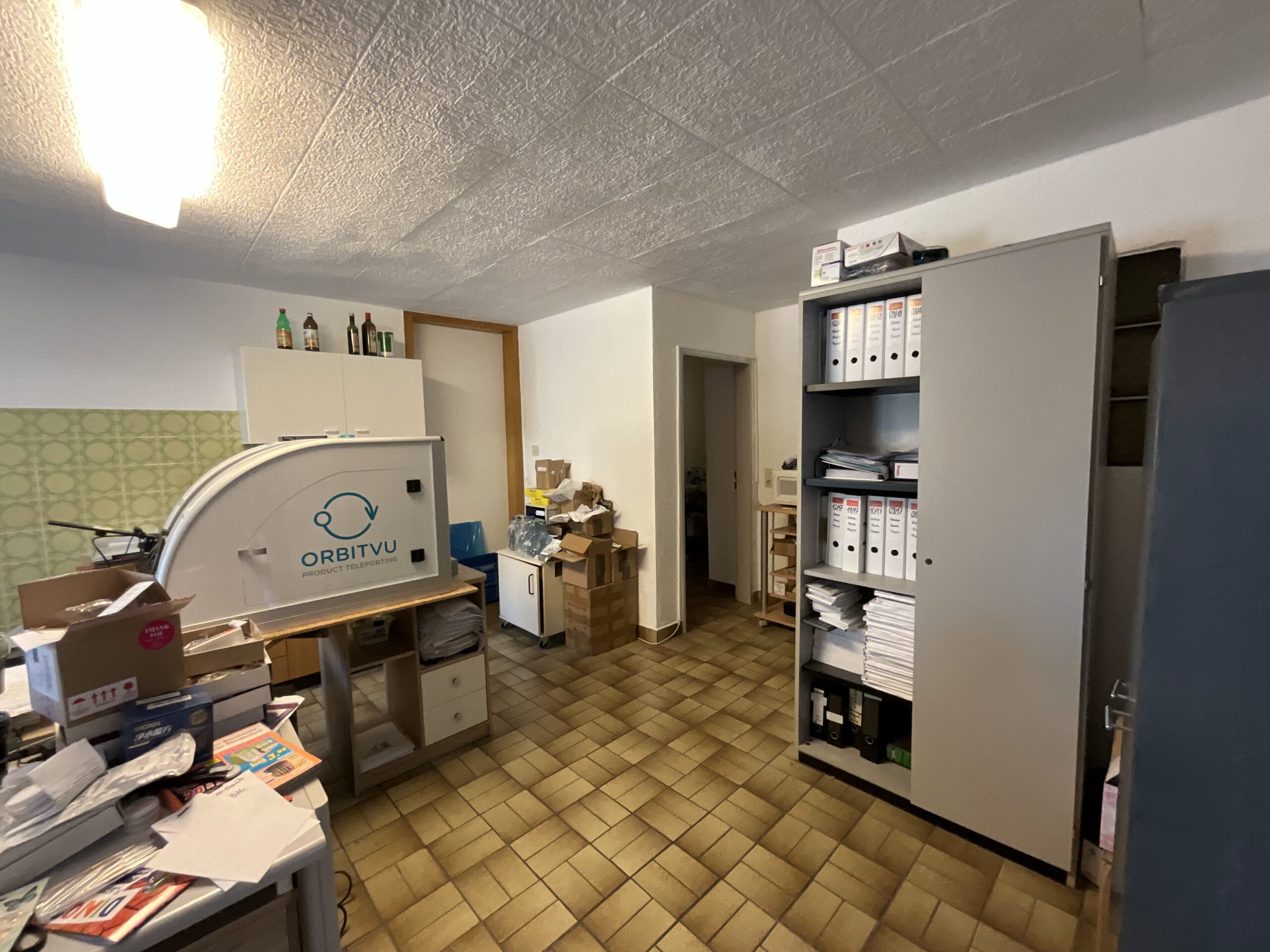 Der vordere Bereich der Immobilie präsentiert sich als großzügiger Laden- bzw. Verkaufsraum, der durch seine offene Gestaltung vielseitig nutzbar ist und sich hervorragend für Präsentation, Beratung, Kundenempfang oder die Einrichtung von Arbeitsplätzen eignet. Der vorhandene Estrichboden unterstreicht den funktionalen Charakter der Fläche und schafft eine solide Grundlage für unterschiedliche gewerbliche Nutzungskonzepte.