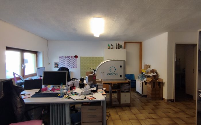 Ergänzt wird das Flächenangebot durch einen separaten Büro- bzw. Nebenraum mit integrierter Kaffeeküche. Dieser Bereich ist mit pflegeleichten Fliesen ausgestattet und eignet sich ideal für administrative Tätigkeiten, als Aufenthaltsraum oder als ergänzende Servicefläche.